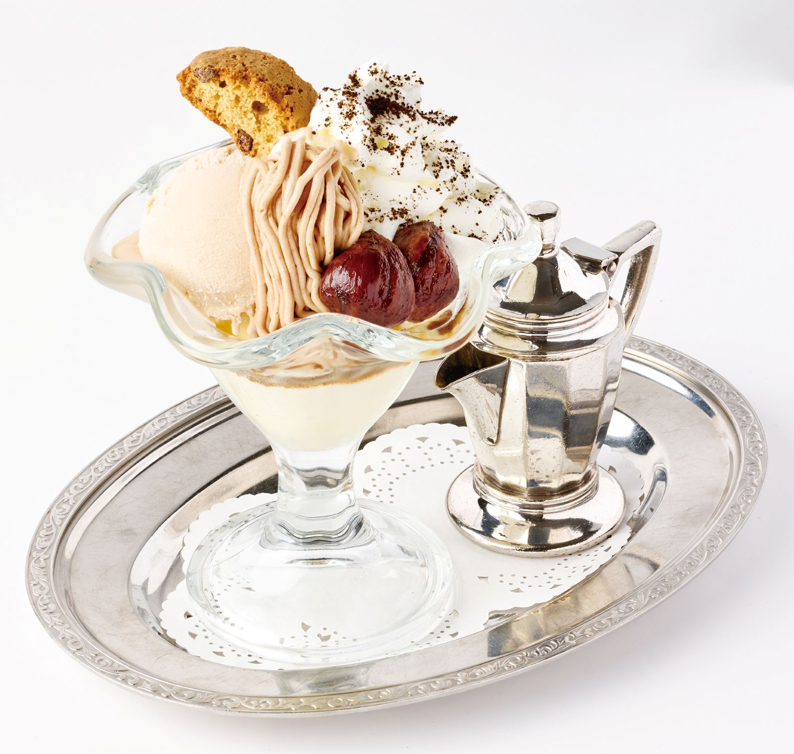 栗の素材を生かした自家製モンブランクリームとマロングラッセジェラートの季節限定アッフォガートです。