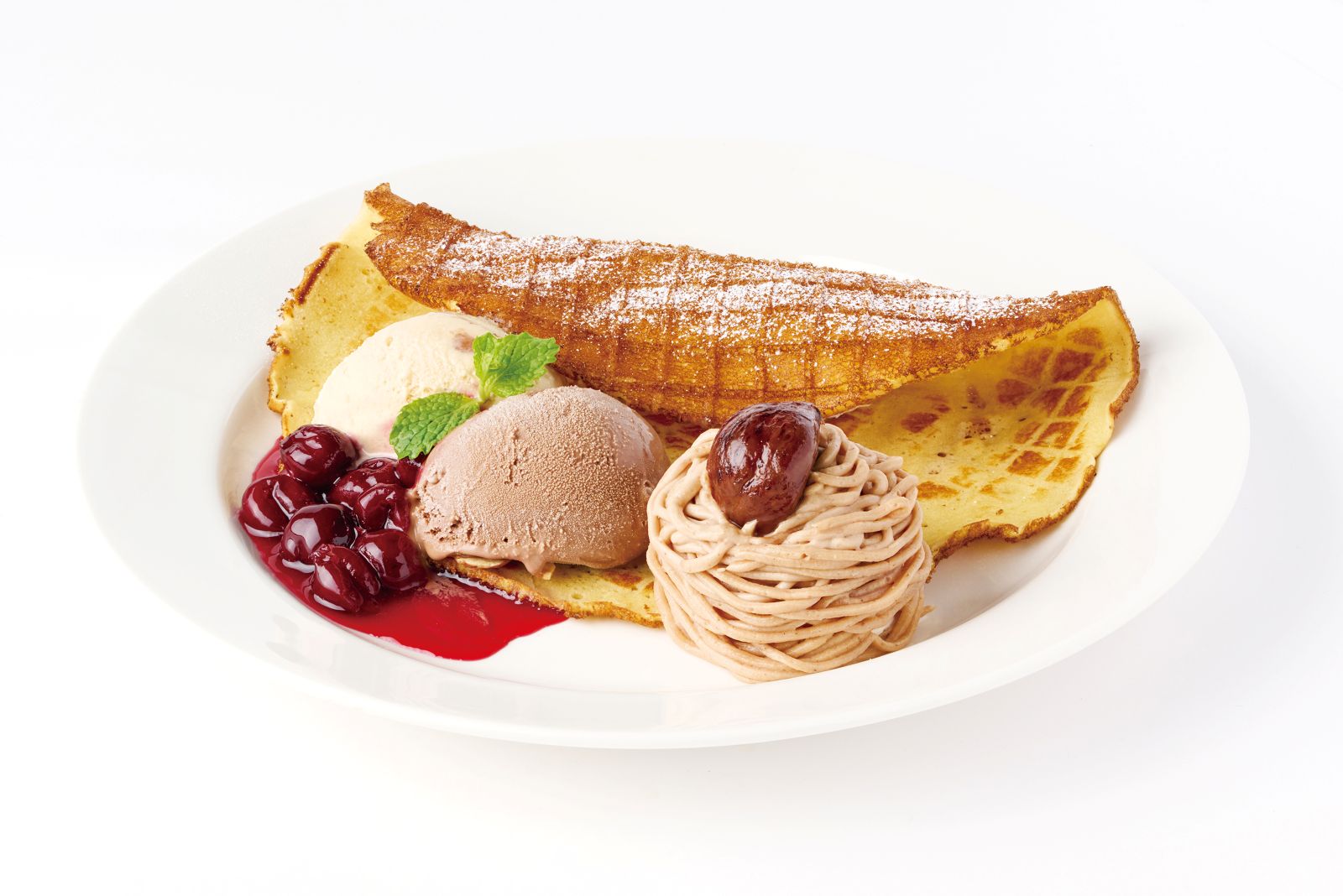 特製モンブラン、マロンとチョコの2種アイスに、ほどよい酸味のグリオットチェリーを添えた秋を楽しむクレールです。